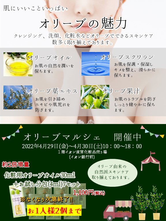 お手頃価格のオリーブスキンケア、限定商品もご用意!