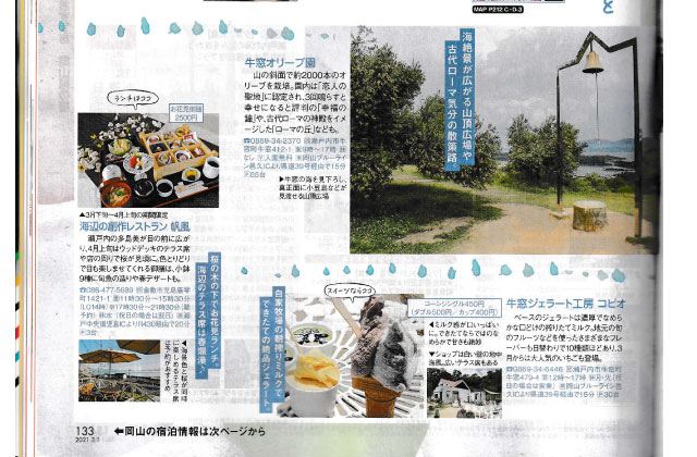 月刊タウン情報おかやまのブックインブックで、タウン情報せとうちという瀬戸内市の各店舗の紹介等掲載されています。そこに「牛窓オリーブ園」が掲載されました。