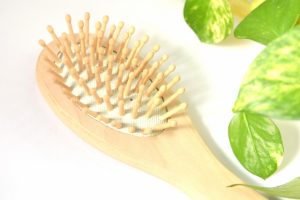 ①髪をブラッシングして、髪と頭皮の汚れを浮かす。