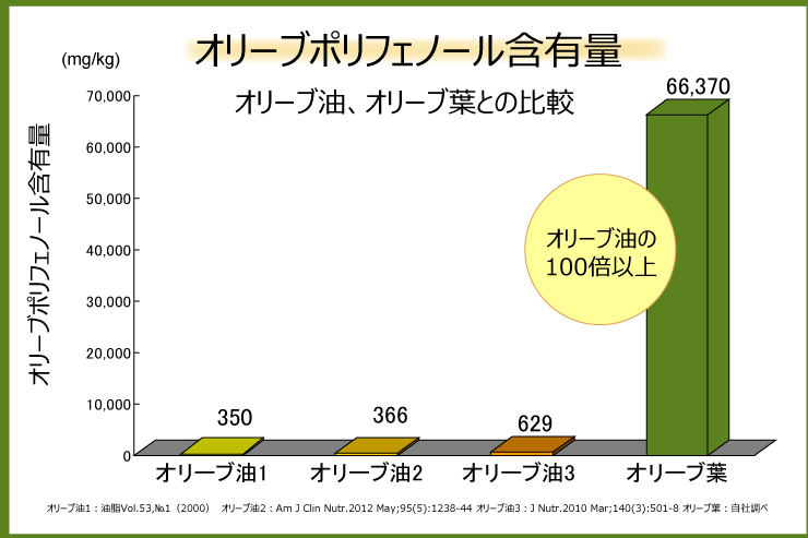 研究を行う中で、オリーブ葉の中には健康と美容効果で注目されている「ポリフェノール」がオリーブオイルに含まれている量の約100倍あることが分かりました。