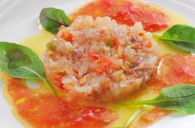 エスケイシャーダとは「ちぎる」「削ぐ」という意味で、削がれた魚の身にオイルやレモンの風味がしっかりとからむ上、薄切りの魚の身にはない食感が楽しめます。