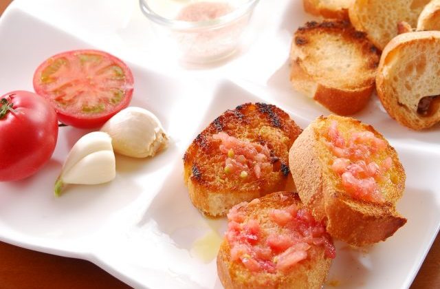 カタルーニャの食卓には、写真のようにトーストしたバケット、トマト、ニンニク。エキストラバージンオリーブオイルがごくごく普通に置かれています。