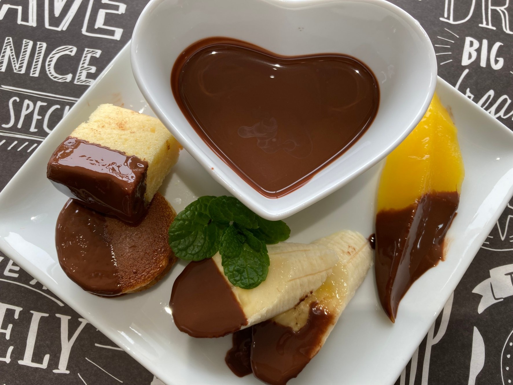 ③ ②にフルーツやパウンドケーキ等お好きな具材を付けて召し上がれ♪