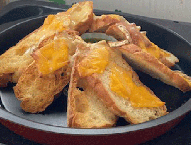 ① パンを薄くスライスする。(8 ~ 10 枚)