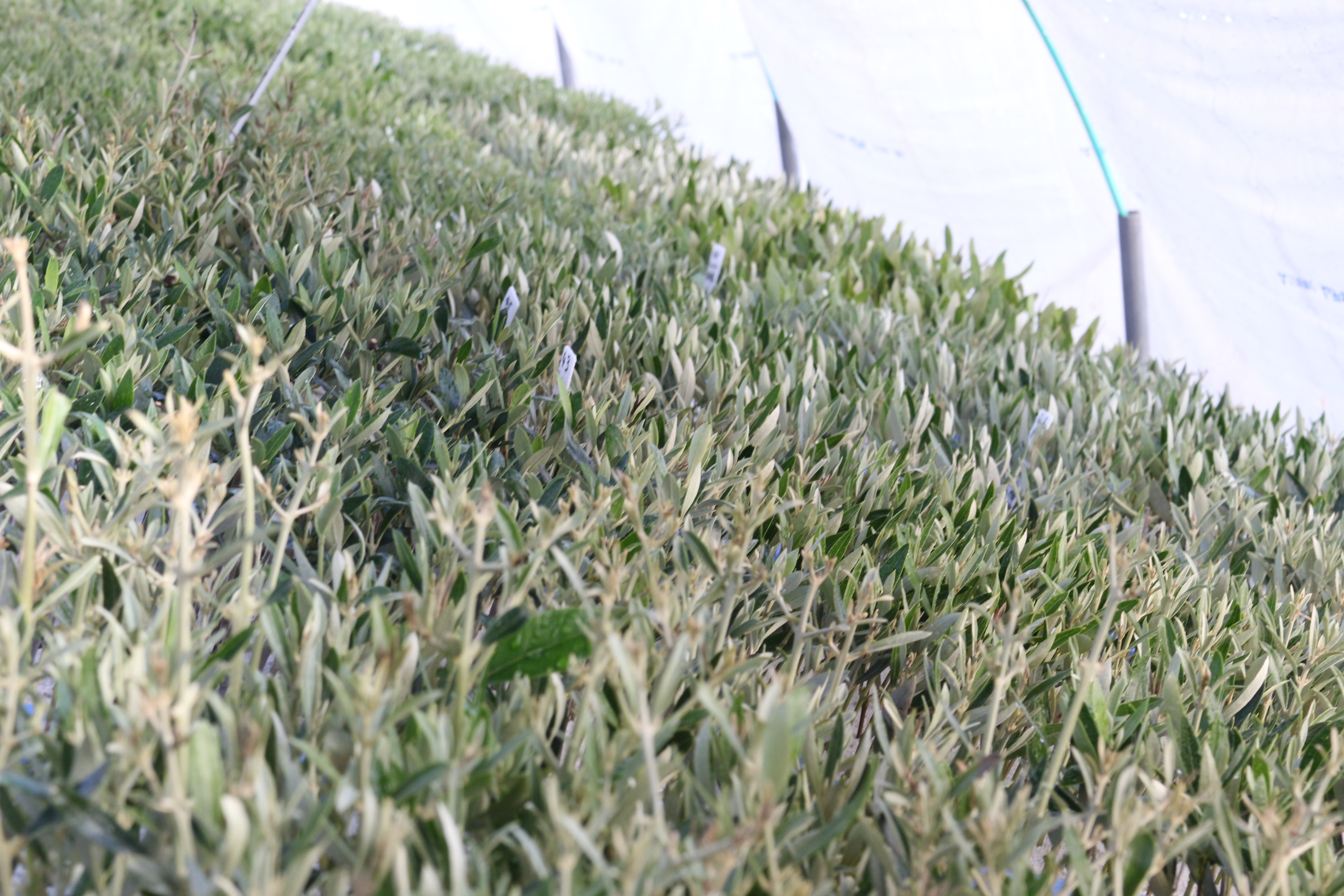 暖かいハウスの中にずらりと並んだ挿し芽。