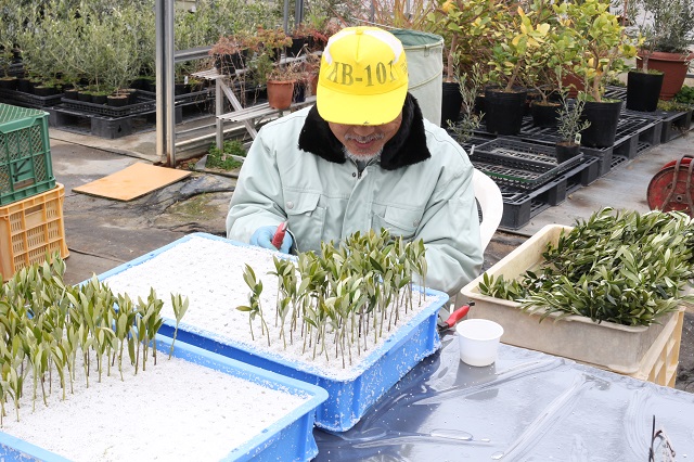 瀬戸内の美しい島々を見渡す丘にある「牛窓オリーブ園」がわたしたちの活動拠点です。約2,000本のオリーブが茂る園内にはハーブ園や幸福の鐘の丘などがあり、家族でくつろげる観光スポットとしても知られています。山頂にあるショップには当店で販売されている化粧品、食品、オリーブの鉢植えなどが並び、展望台からは周囲の景色をぐるりと360度眺めることができます。初夏に咲く白いオリーブの花、秋に色づくオリーブの実、そして年に一度、大勢のお客様でにぎわう収穫祭と、四季折々の表情を楽しんでいただけます。