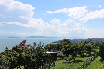 瀬戸内の美しい島々を見渡す丘にある「牛窓オリーブ園」がわたしたちの活動拠点です。約2,000本のオリーブが茂る園内にはハーブ園や幸福の鐘の丘などがあり、家族でくつろげる観光スポットとしても知られています。山頂にあるショップには当店で販売されている化粧品、食品、オリーブの鉢植えなどが並び、展望台からは周囲の景色をぐるりと360度眺めることができます。初夏に咲く白いオリーブの花、秋に色づくオリーブの実、そして年に一度、大勢のお客様でにぎわう収穫祭と、四季折々の表情を楽しんでいただけます。