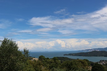 夏と秋が入り交じった空が広がっています。