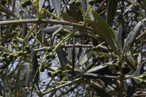 オリーブの浅漬け用に一番最初に収穫が始まるマンザニロは、3ミリほどの大きさに。