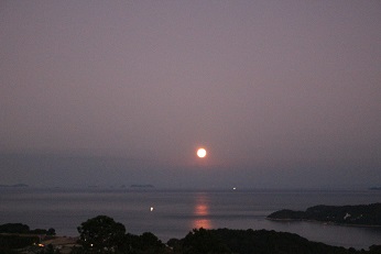 宵が深まると共に瀬戸内海に映るムーンロードの輝きが増します。