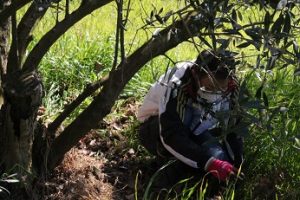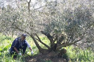 初心に立ち返り、オリーブ1本1本の樹元を草ぬき。