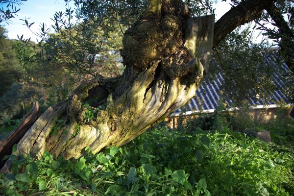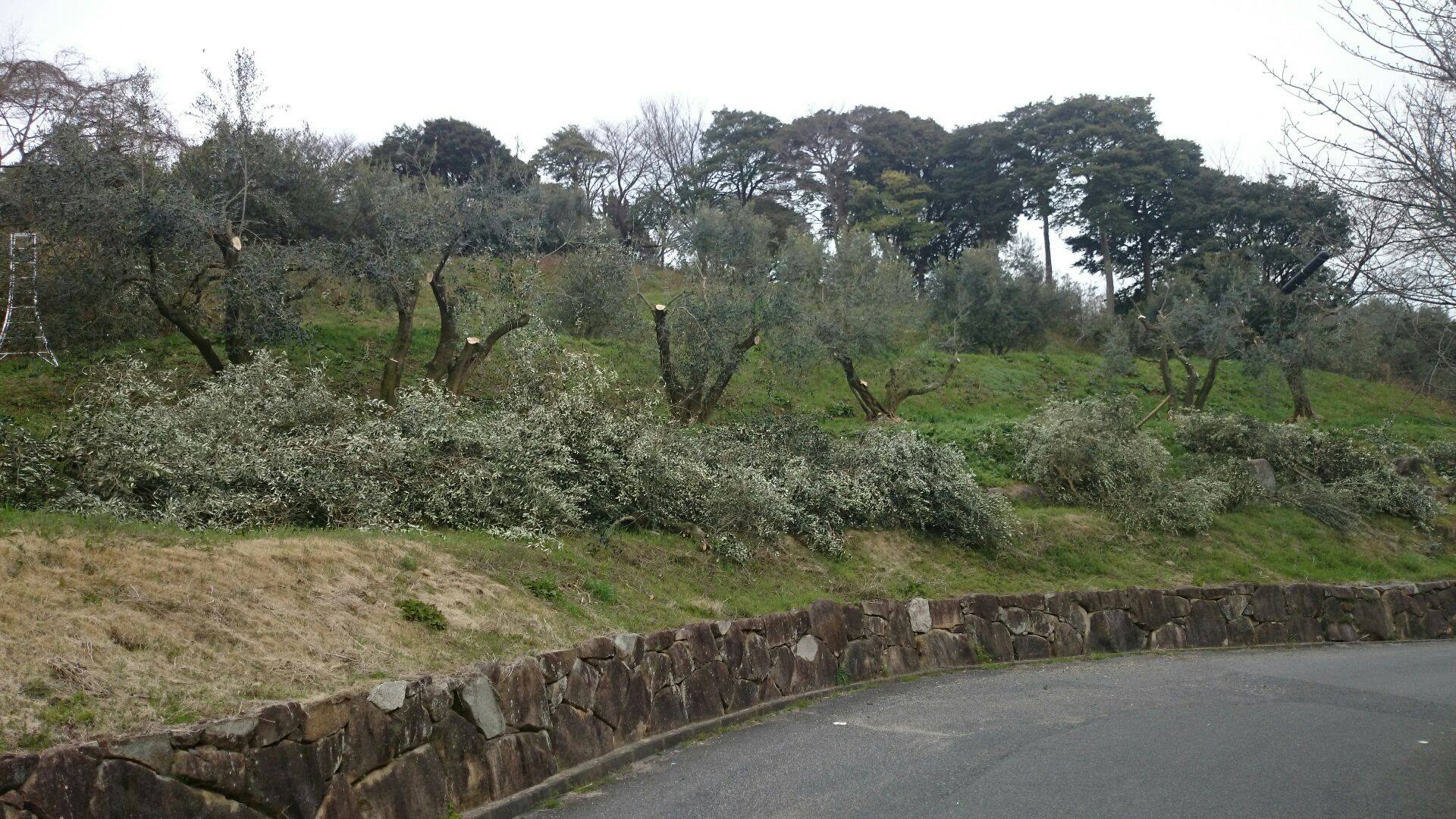 左の写真も、その過程で剪定されたオリーブです。切りすぎかな?と思うのですが、オリーブは生命力の強い樹なので、これくらい切ってしまわないといけないこともあるそうです。