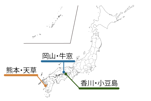 現在オリーブは、小豆島(香川県)、牛窓(岡山)、天草(熊本)など西日本を中心とした温暖な気候の中で育てられています。また、静岡などその他の地域でもオリーブを植える活動が広まっているようです。