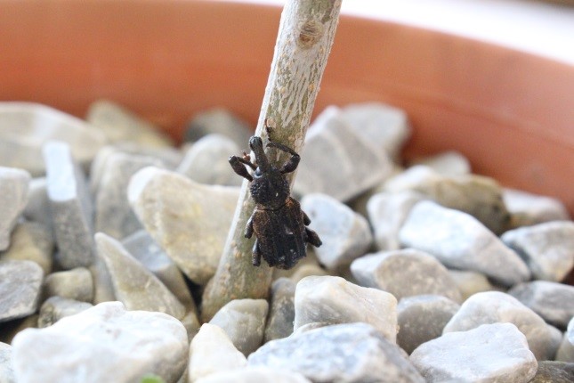 オリーブアナアキゾウムシ: オリーブ栽培最大の敵で、枯れるまで食害します。