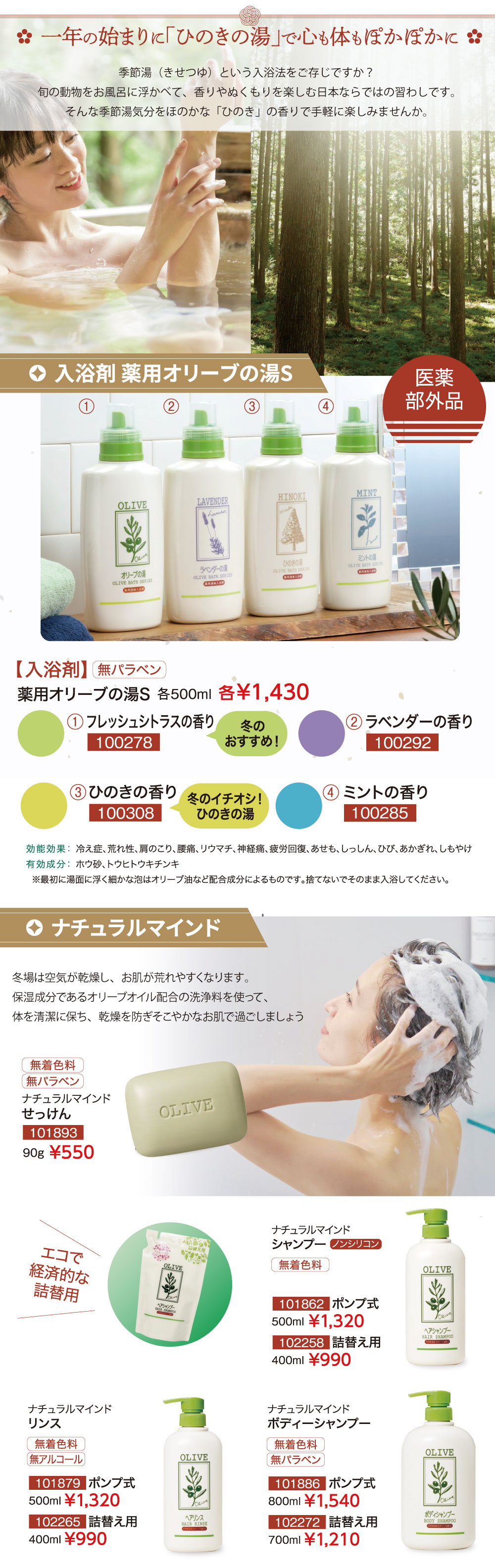 オリーブ化粧品の日本オリーブ公式通販 > 冬のあたたかお風呂キャンペーン