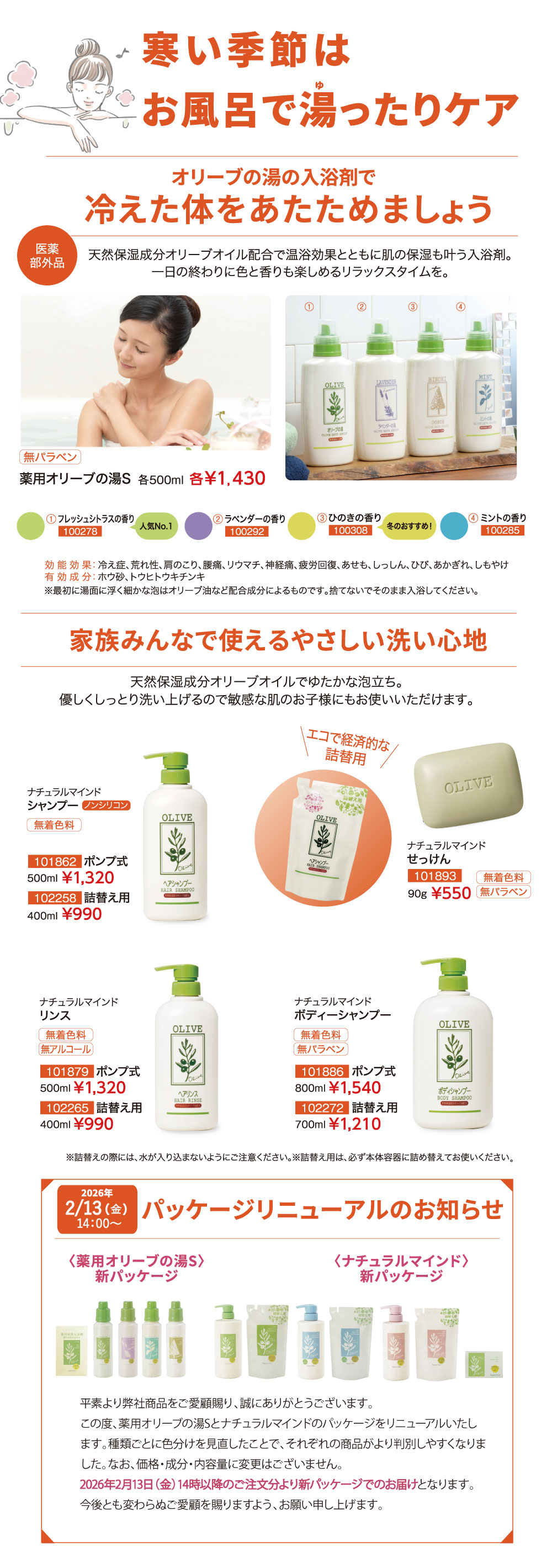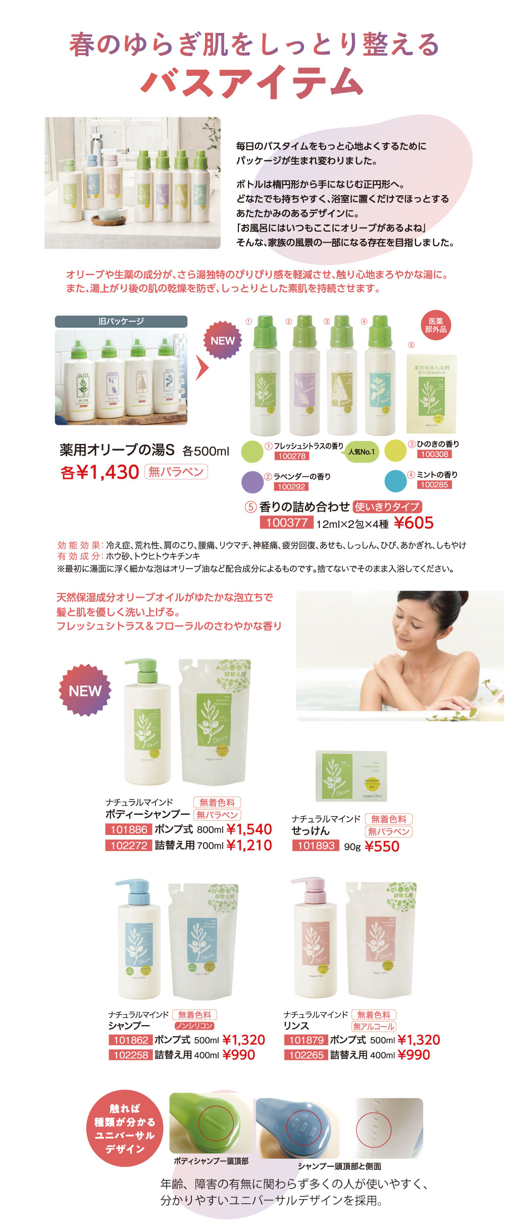 オリーブ化粧品の日本オリーブ公式通販 > バス用品 > リニューアルバス用品