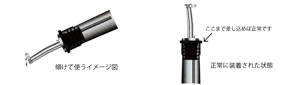 注ぎ口は奥まで差し込んでも、上図の位置まで自然に上がってきます。