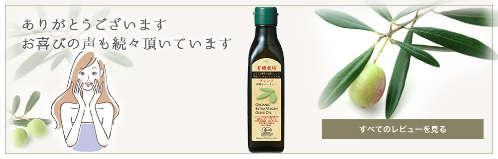 「化粧用オリーブオイル」は、長年ご愛用のお客様から口コミで広がり、「これからもずっと愛用していきたいと思います」「使い始めて約30年近く経ちます」と評判です。