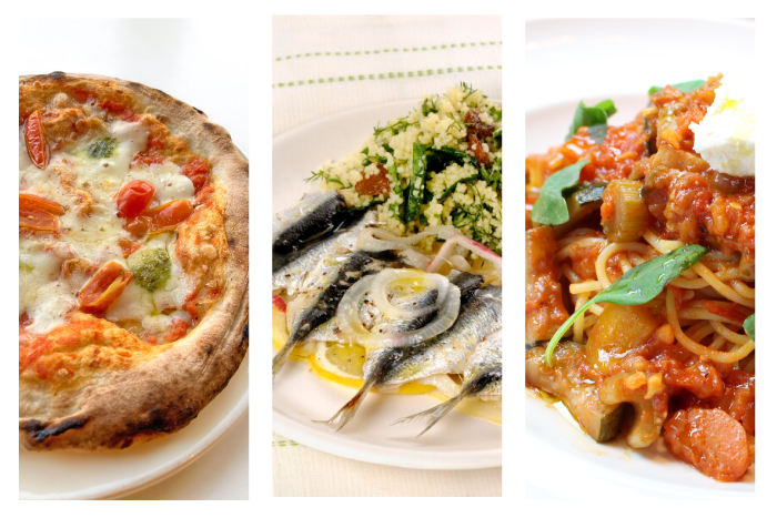• シチリア料理にはイワシ、カジキマグロ、アサリ、タコ等の魚貝類やトマト、茄子、レモンがよく使われます。