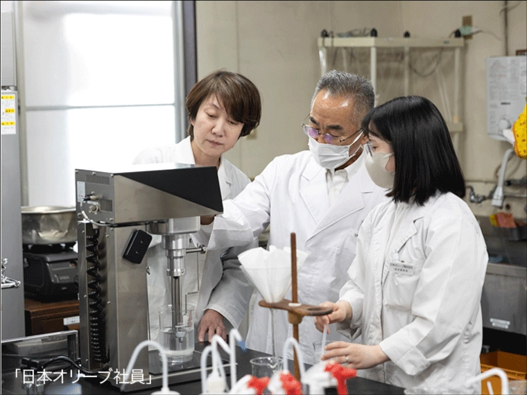 日本オリーブでは創業以来社員の1割以上が研究員として在籍しており、オリーブの研究・化粧品の開発や品質管理を行っています。 |